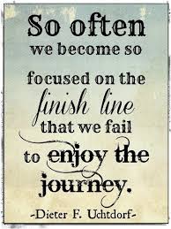 Make a choice - a hard one to eliminate some of the jars or maybe change the path a little, running on one or the other instead of the usual? Or, here's a concept worth considering, quit running for a while and let the worn paths of my life fill in a little and become more like a walk on a beach than a dash down a highway. Maybe one or two need to be cordoned off until they are safer or maybe some very faint ones need to be explored more thoroughly. That is life and until I can take it all in I will fail to enjoy my journey. Focusing on the finish line is futile as the only finish line we ever truly cross in finality is death. The rest are all just part of the scenery.
